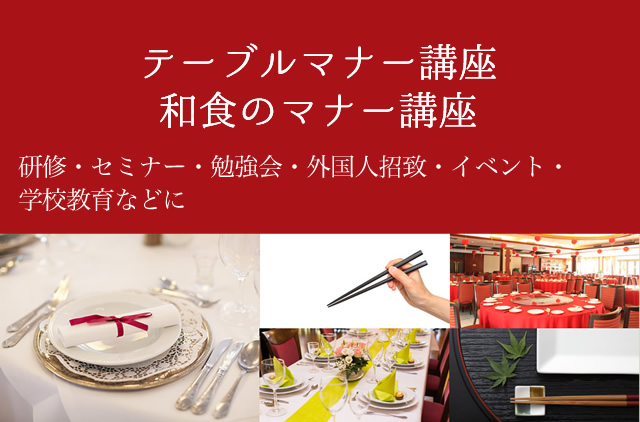 接待やビジネスでの会食など、交流の場にかかせない、食事のマナー。一度習得すれば、どのようなシーンでも、自信を持って堂々と振る舞うことができます。研修・セミナー・勉強会・外国人承知・イベント・学校教育などに、ご活用ください。